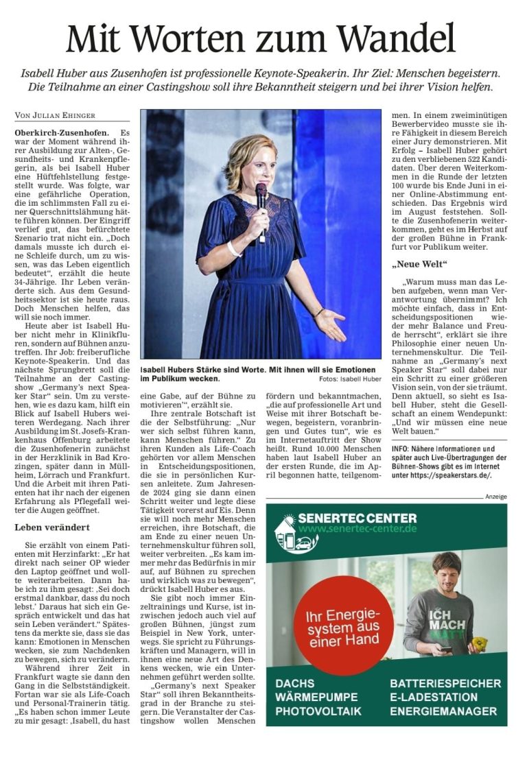Die erfreuliche Ehrung aus über 2000 Nachwuchstalente wurde am 25. Juni 2025 Isabell Huber durch die Speaker Star Allianz verkündet: